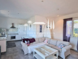 L'étage, accessible par un escalier extérieur, dispose d'un appartement de 55,91 m². Il comprend un salon/salle à manger ouvrant sur une terrasse offrant une vue mer imprenable, une cuisine fonctionnelle, deux chambres et une salle d'eau avec WC.