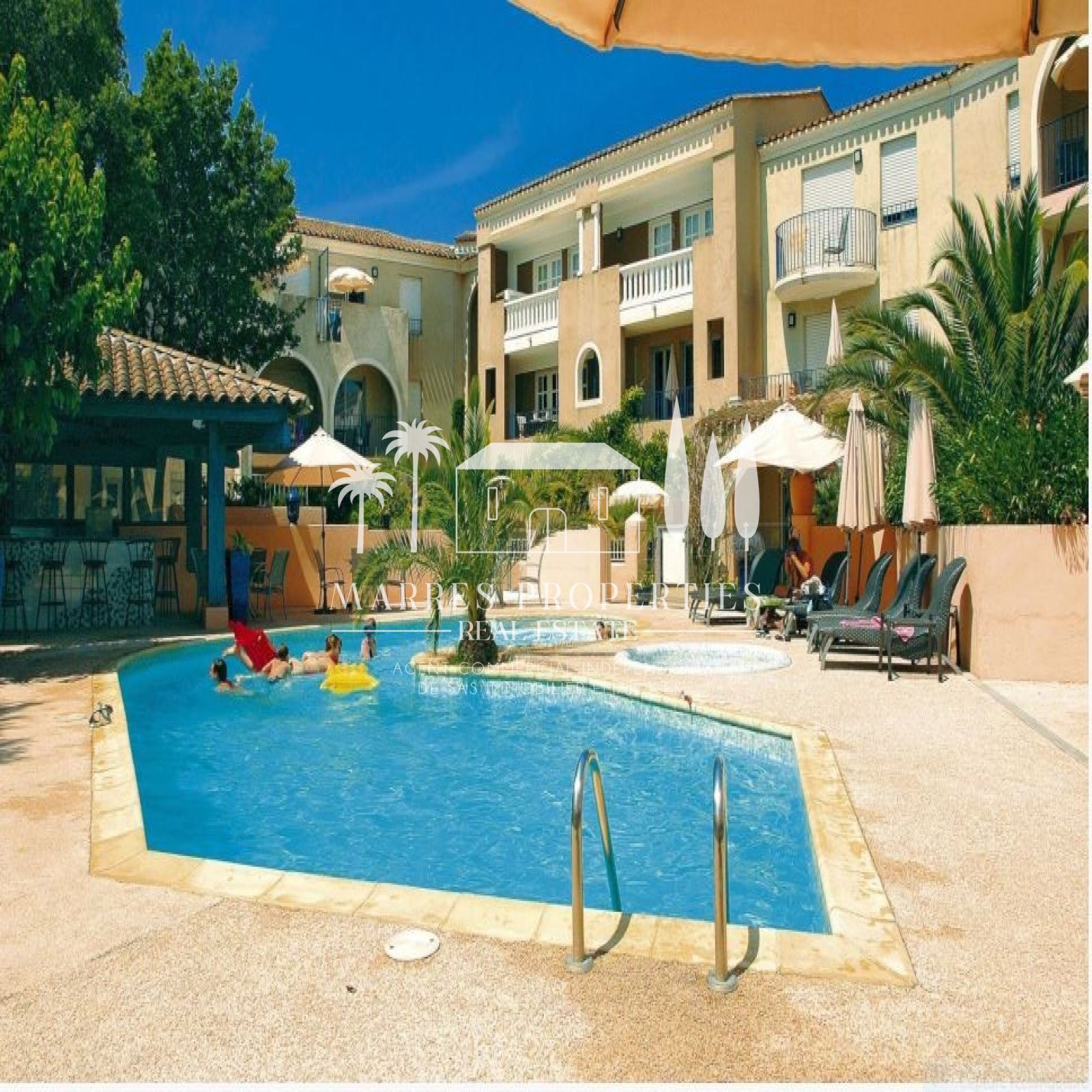 Joli appartement 2 pièces de 34 M2. Situé dans une résidence avec piscine, tennis, à 1.5km à pieds du centre de Saint-Tropez. Il se compose d'une entrée avec son coin cabine avec un lit superposé, d'une chambre avec placard, un séjour avec sa cuisine équipée donnant sur une terrasse de 4m2, une salle de bain, un WC séparé et une place de parking extérieur. Ce bien est idéal pour une résidence secondaire ou pour un investissement locatif. Appartement soumis au statut de la copropriété, Dans petite copropriété composée de 63 appartements (nombre total de lots : 126) Charges courantes prévisionnelles : 252,15 euros / mois, soit 3 025,80 euros à l'année. Pas de procédures relatives aux copropriétés en difficultés